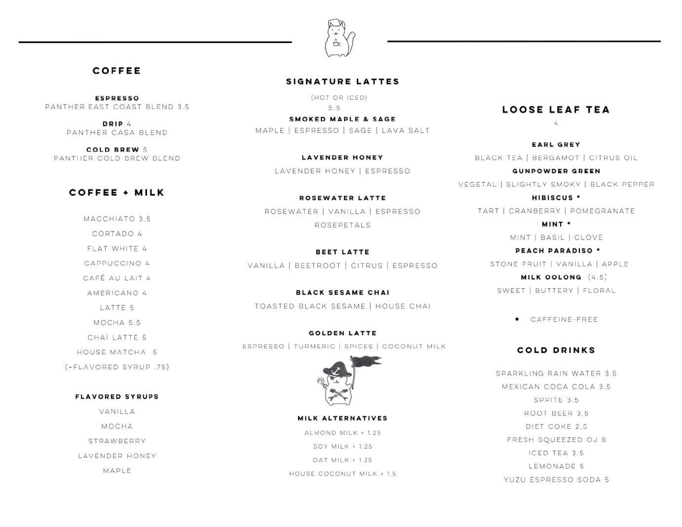 Coffee with Whole Milk by default (Milk Alternatives available for an upcharge: Almond, Oat, and Soy + $1 ; Coconut + $1.5)